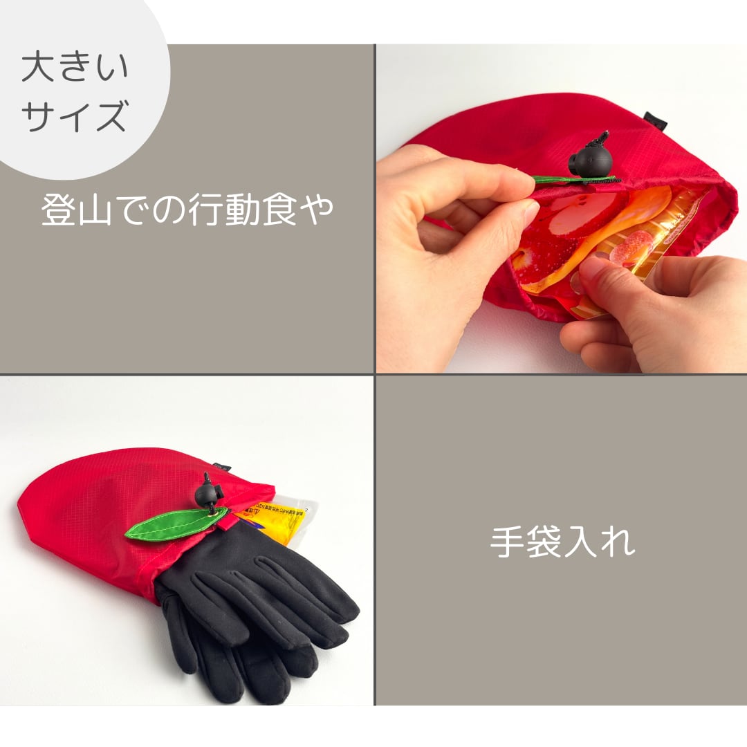 【赤りんご巾着(小・大)】くだもの巾着|登山・旅行の小物をかわいく収納