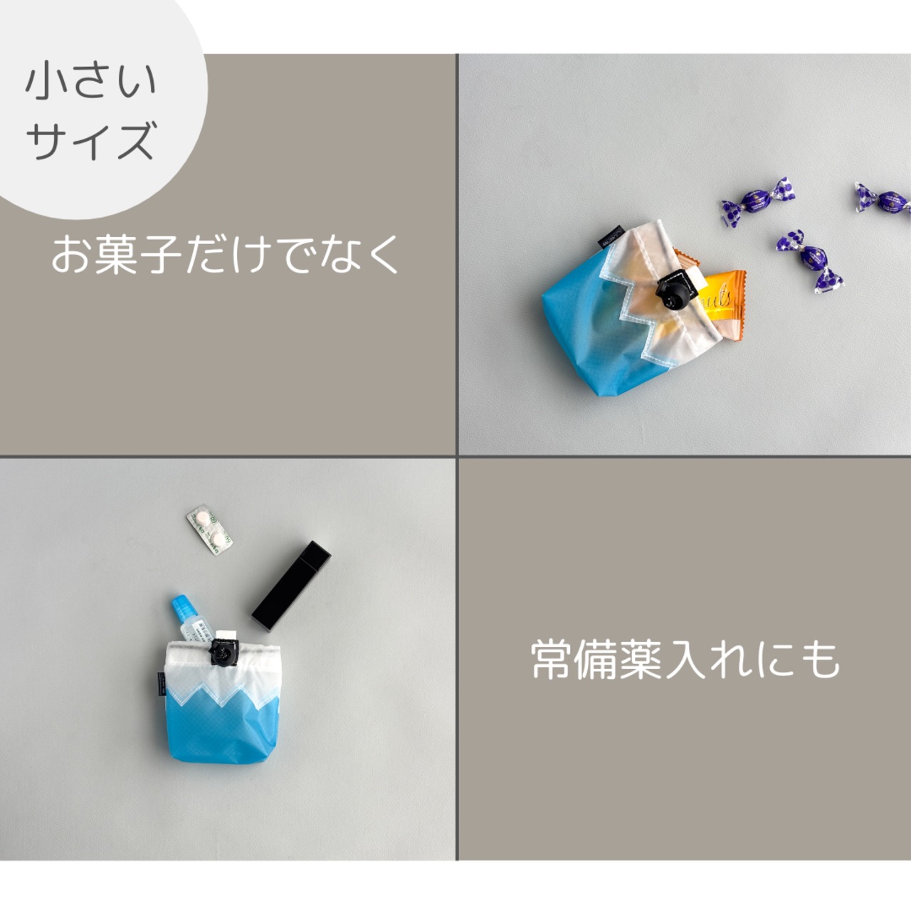 【お山の巾着(小)】薬やイヤホン入れに 軽量ナイロンのミニ巾着