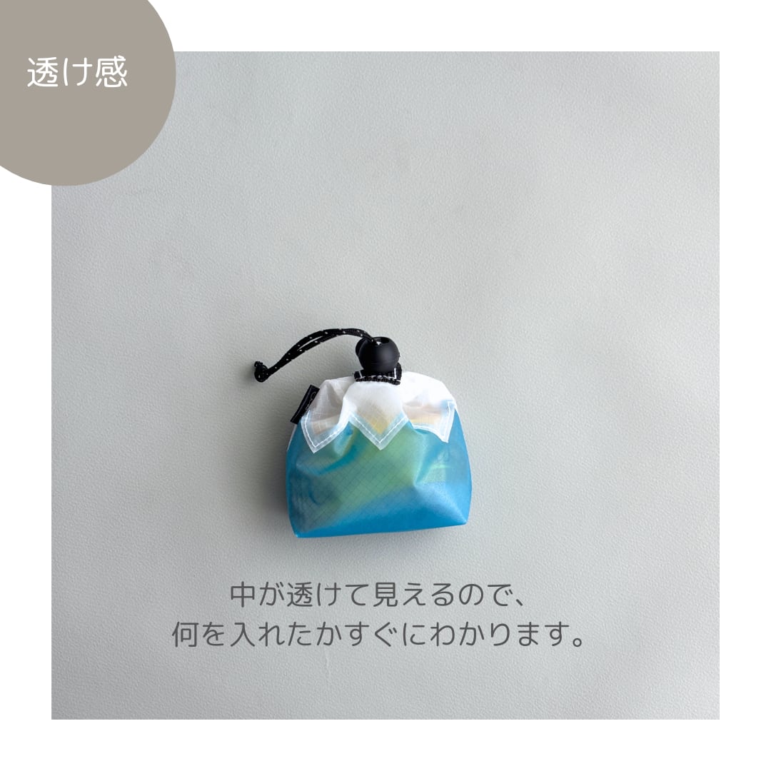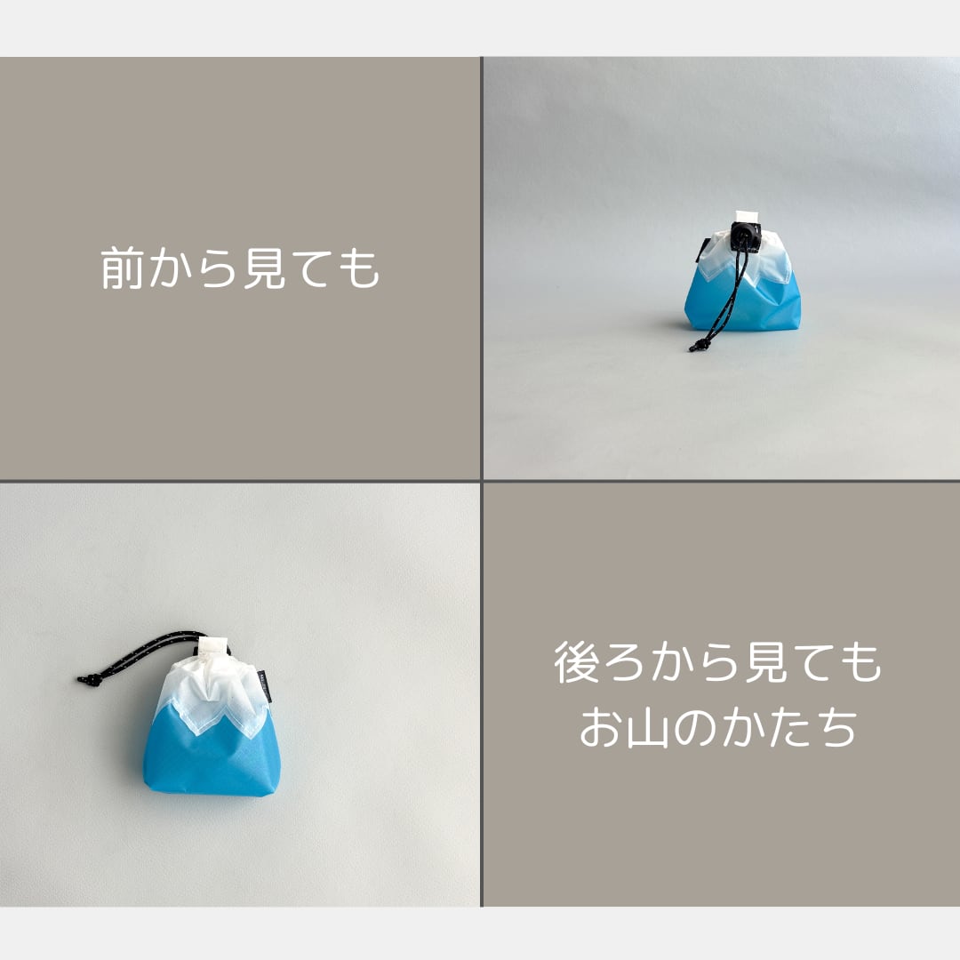 バッグやザックにちょこんと付いていると、ちょっと気分が上がるお山の巾着です。