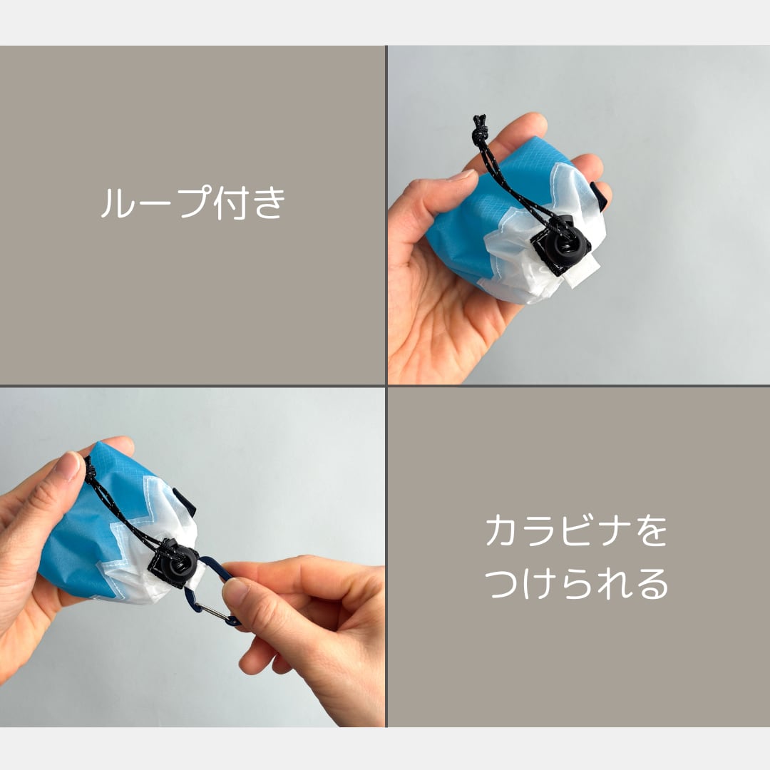 → ザックやバッグに付ければ、使いたいときにさっと取り出せます。