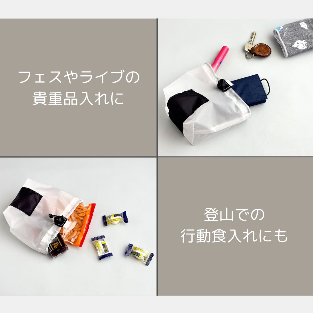 ★先行販売★【おむすび巾着 大】コンビニおにぎり2つ入る 軽量ナイロン 仕分けポーチ 山登りやアウトドアにも