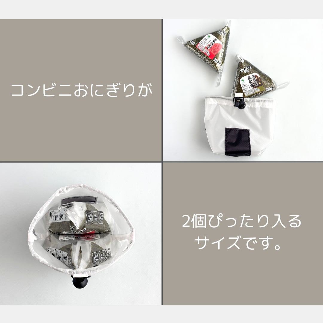 コンビニおにぎり2つがすっぽり入る、大きめサイズのおむすび巾着袋。