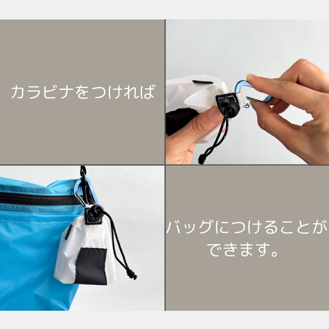 → ザックにカラビナで吊るせば、行動中もすぐ取り出せて便利。